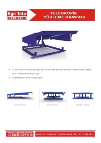 Hidrolik hortum patlama valfi, Sarı siyah emniyet işaretlemeleri, Arac carpmasını sönümleyici profil desteği Beton rampa üzerine hiçbir işlem gerekmeden kolaylıkla montajı yapılmaktadır. Hidrolik ünitenin uyumu sayesinde kolay ve emniyetli kullanım sağlamaktadır. Beton rampanın çok alçak olması durumunda sabit rampa yapılmak suretiyle kolay kullanım sağlanmaktadır. Standart imalatlarımız dışında işletmenin durumuna göre imalatımız mevcuttur.